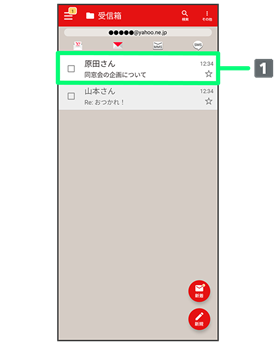 - 受信箱画面で下にフリックしても新着メールの確認ができます。