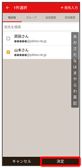 - 宛先入力をタップすると、宛先を直接入力できます。また、入力した宛先を電話帳に登録することもできます。