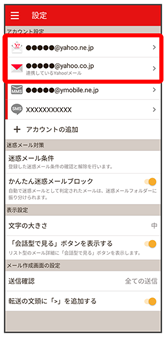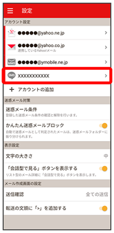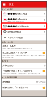 - Y!mobile メール設定画面で、Y!mobile メールのアカウントをタップ