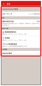 | 未登録 | 電話帳に未登録の相手からメールを受信したときの通知方法を設定します。 | |