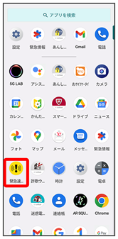 緊急速報メール受信メッセージ一覧画面が表示されます。