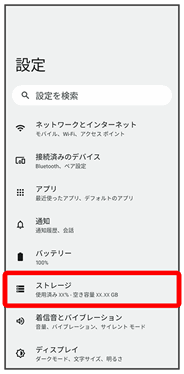 ストレージの設定画面が表示されます。