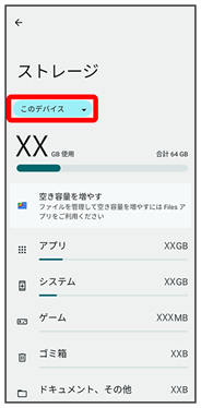 | 写真、動画、音楽 | データ作成時、内部ストレージ/SDカードに保存されます。SDカードが挿入されていない場合は、内部ストレージに保存されます。 |