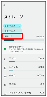 SDカード全体の容量と、現在の使用量を確認できます。