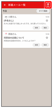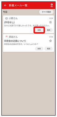 • ↓新着メール一覧画面で削除する新着メールの削除