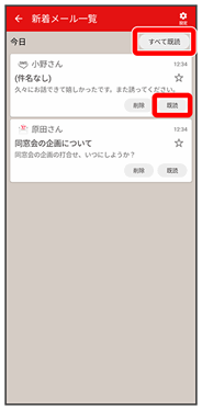 • すべて既読をタップすると、タップした日のすべてのメールが既読になります。