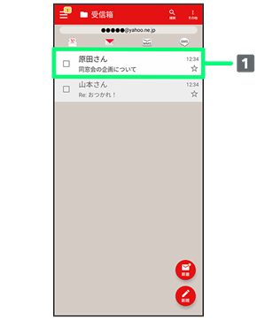 • ↓受信箱画面でメールのandroidone-s10_icon_065androidone-s10_icon_061表示)