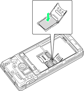 - SIMカードの向き(切り欠き部分/IC(金属)部分を下)に注意し、SIMカードをSIMカードスロットに置きます。