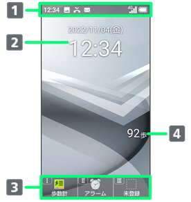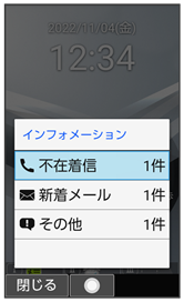 不在着信や新着メールなどがあると、待受画面の下部にインフォメーションが表示されます。
