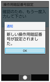 各機能を利用するときの操作用暗証番号を入力する画面で、操作用暗証番号変更