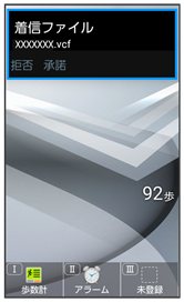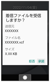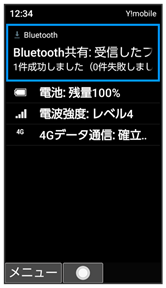 相手からデータの受信要求があると、Bluetooth®着信ファイル通知が表示されます。次の操作を行うと、受信することができます。