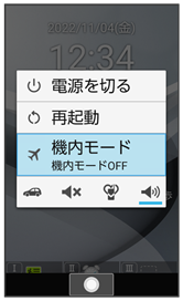 Wi-Fi機能やBluetooth®機能がONのときに機内モードに設定すると、その時点でそれぞれの通信がOFFになります。データ通信中に操作すると切断されますので、ご注意ください。