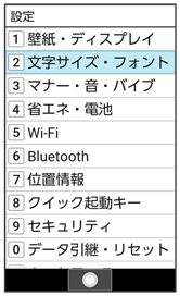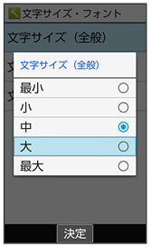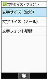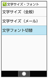 画面に表示される文字サイズやメール画面での文字サイズを変更したり、画面に表示される文字の書体を設定します。