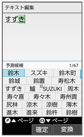漢字(ひらがな)入力モードで、「すずき」と入力する方法を例に説明します。