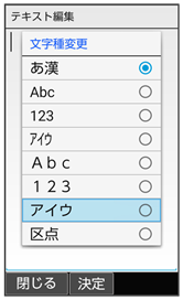 (半角カタカナ/半角英数字(小文字))が表示されます。