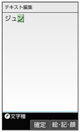 漢字(ひらがな)入力モードから全角カタカナ入力モードに切り替えて、「ジュン」と入力する方法を例に説明します。