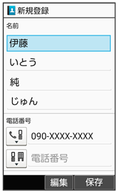 名前、電話番号、メールアドレス、グループを登録する方法を例に説明します。