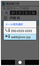 - 連絡先に電話番号/メールアドレスのどちらか1件だけ登録されているときは、メール宛先の選択画面は表示されません。