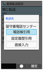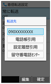 - 以前に転送先として設定した電話番号は設定履歴引用と操作して入力できます。