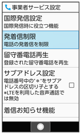 発着信制限画面が表示されます。
