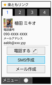 楽ともリンクからSMSを送信する
