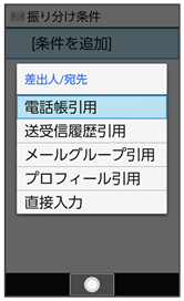 - 条件追加時に電話帳登録なしと操作すると、電話帳にないアドレスを条件に追加できます。