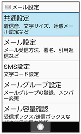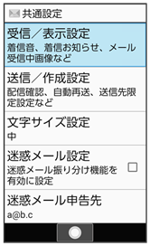 | 受信/表示設定 | メール/SMS受信時の設定を行います。メール/SMSを受信するときの着信音や表示に関する項目などを設定します。 | |