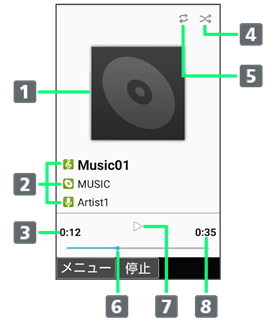 • 音楽再生画面でicn_button_mail(メニュー)→ヘルプと操作しても表示できます。