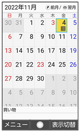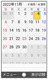 (表示切替)を押すと、カレンダーの表示を切り替えることができます。 - 1ヵ月表示で日付を選択するときは