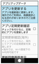 表示)に設定されています。 - アプリ定期更新確認と操作するたびに、有効(