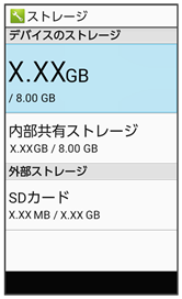 | 内部共有ストレージ | 内部ストレージの使用容量の詳細を確認できます。 | |