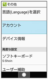 | アカウント | アカウントの新規作成/追加ができます。また、新規作成/追加したアカウントの同期について設定できます。 | |