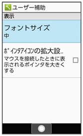 | ユーザー補助 | 本機を使用するうえで便利なユーザー補助に関する機能を設定できます。 |