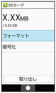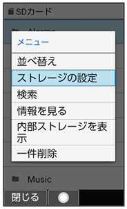 内部ストレージ/SDカードの登録内容は、事故、故障、修理、機種変更などの際や、その他の取り扱いなどによって、消失または変化してしまうことがあります。大切なデータは定期的にバックアップをとっておかれることをおすすめします。なお、データが消失または変化した場合の損害につきましては、当社では責任を負いかねますのであらかじめご了承ください。