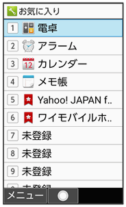 お気に入りに登録されている機能のリストを表示して、そこから機能を呼び出します。