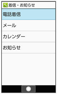 • 着信ランプの点滅と操作するたびに、ON(aquos-keitai4_icon_062)/OFF(aquos-keitai4_icon_063)が切り替わります。