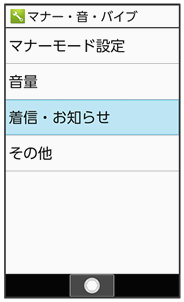 • ↓音・バイブ・ランプ設定画面で着信ランプ