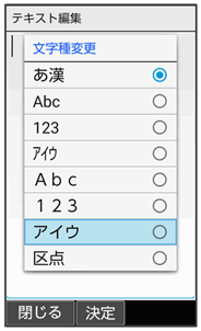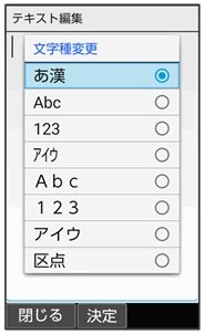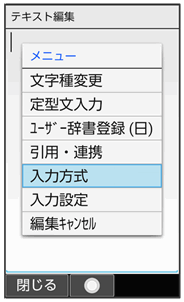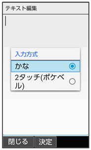 入力方式を2タッチ(ポケベル)にすると、2桁の数字で文字などを入力できます。