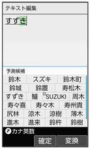 漢字(ひらがな)入力モードで、「すずき」と入力する方法を例に説明します。