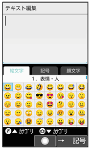 絵文字/記号/顔文字の入力画面(履歴があるときは、入力履歴画面)が表示されます。