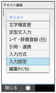 | 入力補助・変換 | 予測変換、自動カーソル移動などを設定できます。 | |