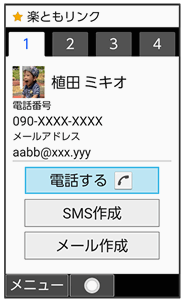 よく連絡する相手を楽ともリンクに登録すると、簡単に電話がかけられます。