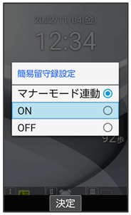 に設定した場合は、マナーモードを有効にしているときに、簡易留守録が有効になります。