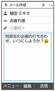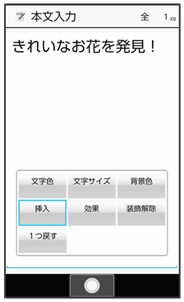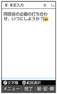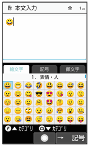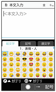 • 絵文字の入力画面以外の画面が表示されているときは、icn_button_browser(→記号/→顔文字)を押し、表示を切り替えてください。