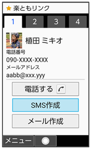 よく連絡する相手を楽ともリンクに登録すると、簡単にSMSを送信することができます。