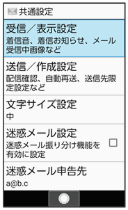 | 受信/表示設定 | メールの受信方法を設定します。 | |