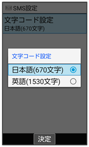 SMS設定画面が表示されます。