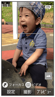 フォーカス設定が顔優先AFのときは、人の顔を検出して自動的にフォーカス動作を行います。