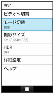 | 撮影サイズ | 写真/動画の撮影サイズを切り替えます。 | |