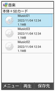 ここでは、データフォルダから音楽を選択して再生する方法を例に説明します。